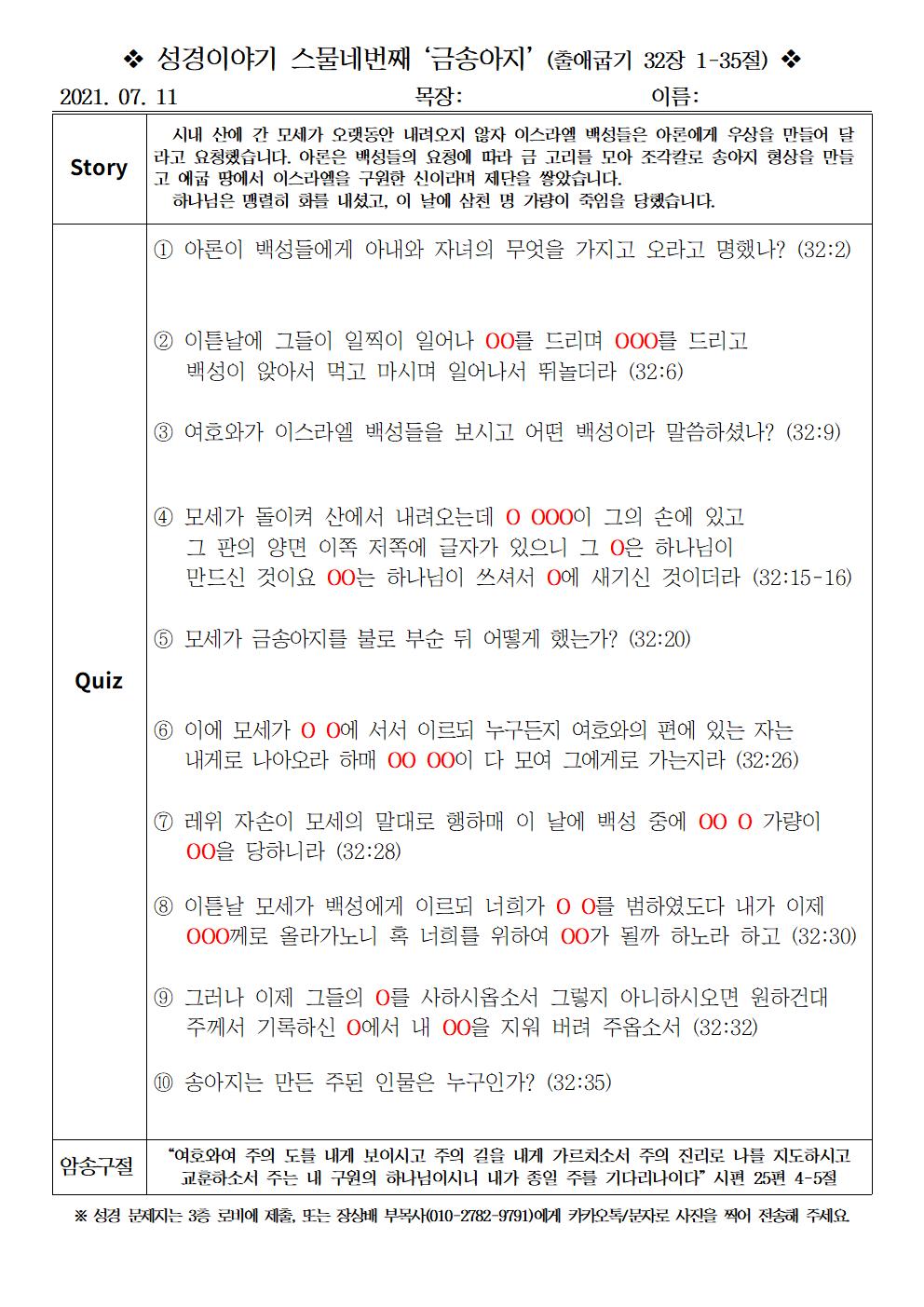 [성경퀴즈대회] 스물네번째 '금송아지'(출애굽기 32장 1-35절)